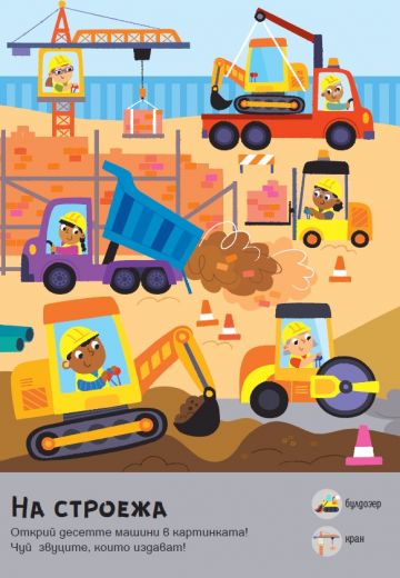 Искаш ли да чуеш звуците, които издават превозните средства? Тогава тази забавна музикална книга е тъкмо за теб. Намери търсеното превозно средство в голямата картинка, после натисни бутона, за да чуеш гласа му.
